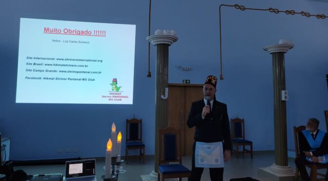 Nesta segunda-feira, dia 28 de agosto, o Clube Hikmat Shrine Pantanal-MS realizou uma palestra sobre a entidade, durante sessão conjunta entre as Lojas Raul Sans de Matos, Nº 38 e Acácia Pantaneira, Nº 59. A sessão foi presidida pelo Sereníssimo Grão-Mestre, Ir∴ Ademar de Souza Freitas, que é membro do Shriner e conduzida pelo Ven∴ M∴ da Loja, o ir∴ Enier Guerreiro da Fonseca.