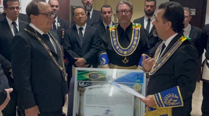 A placa mostra que a homenagem foi feita pela GLEMS em forma de “gratidão aos relevantes serviços prestados à nossa sublime Potência Maçônica e a Maçonaria Universal, por meio das instruções filosóficas, que elevam e contribuem para o crescimento intelectual e maçônico dos irmãos”.