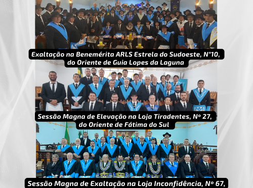 A Loja Inconfidência, Nº 67, do Oriente de Campo Grande realizou no dia 17 de junho, no Templo da GLEMS, a Sessão Magna de Exaltação dos irmãos José Luiz Richetti, Justiniano Barbosa Vavas e Daniel Gomes Guimarães.