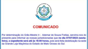GRÃO-MESTRE E VENERÁVEIS SE REÚNEM PARA TRATAR DA IMPLANTAÇÃO DA CASA DE APOIO EM DOURADOS Saiba Mais »
