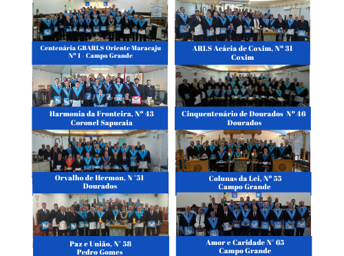 Mais oitos lojas jurisdicionadas a Grande Loja Maçônica do Estado de Mato Grosso do Sul, localizadas nos orientes de Campo Grande, Coronel Sapucaia, Coxim, Dourados e Pedro Gomes, realizaram Sessões Magnas de Instalação dos Veneráveis Mestres eleitos por suas respectivas lojas.
